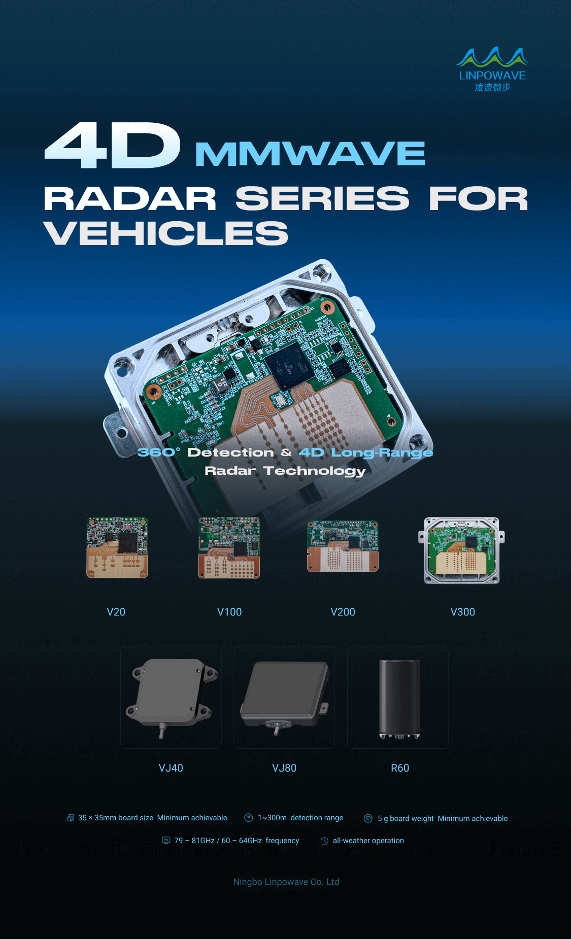 يُعدّ رادار V300 رباعي الأبعاد بتقنية الموجات المليمترية وحدة استشعار عالية الأداء مصممة خصيصًا لأنظمة مساعدة السائق المتقدمة (ADAS) وتطبيقات القيادة شبه الذاتية. يعمل الرادار ضمن نطاق الموجات المليمترية 76-81 جيجاهرتز، ويوفر إدراكًا رباعي الأبعاد في الوقت الفعلي مع قياس دقيق للمسافة والزوايا الأفقية والرأسية وسرعة الهدف.